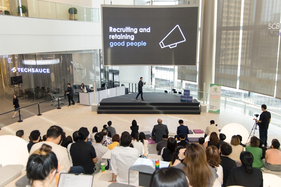 แขกรับเชิญคือคุณซีเค เจิง CEO จาก Fast Work, คุณกุลวดี โอฬารพันธุ์สกุล – Chief Leadership Officer จาก สลิงชอท กรุ๊ป คุณณัฐวุฒิ เกียรติไชยากร Chief Business Resources จากสยามพิวรรธน์