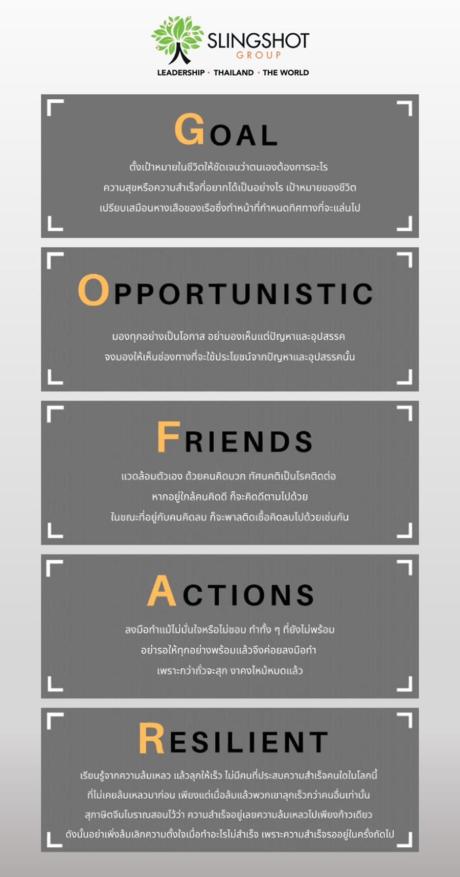 ผมขอนำเสนอ 5 ขั้นตอนสำคัญ เรียกเป็นคำย่อว่า GO-FAR (แปลว่า ไปได้ไกล)