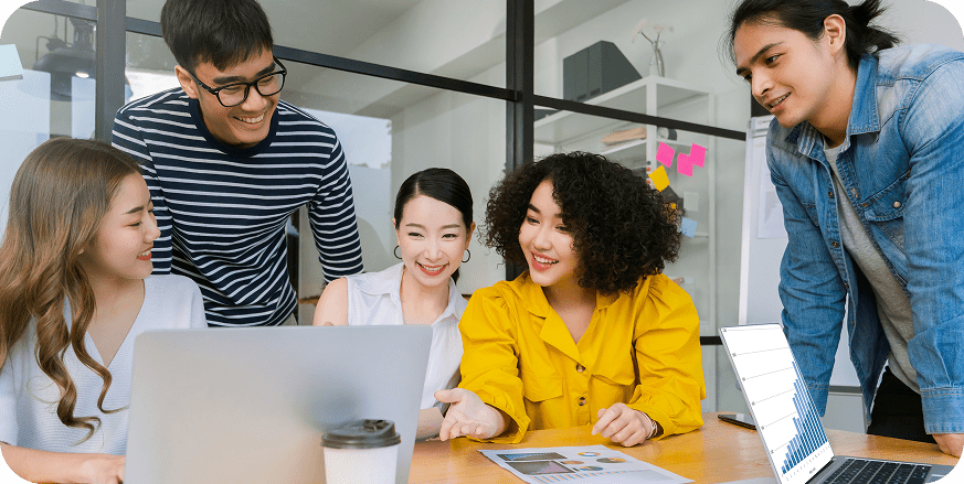 พนักงานของเรามีโอกาสบ่อยครั้ง รวมทั้งได้รับการสนับสนุนให้ทำงานเป็นกลุ่มพร้อมกับเพื่อนร่วมงานที่มีการศึกษาและภูมิหลังที่แตกต่างหลากหลาย เพื่อสร้างความสำเร็จในอนาคตเพื่อตัวเอง องค์กร และลูกค้า